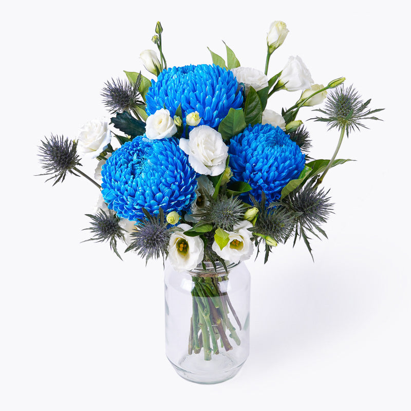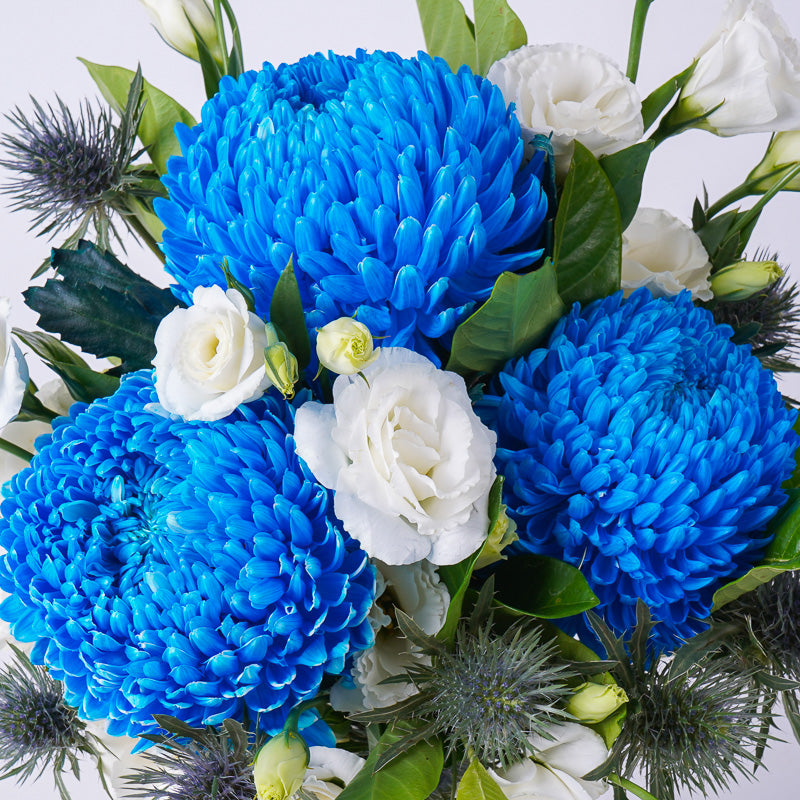 Show off your passion with this enchanting blue and white floral combination, made to perk anyone up even on the dimmest days. Its vibrant, full-of-life stalks exhibit an energetic vibe, making it perfect as an uplifting gift or a home decor!