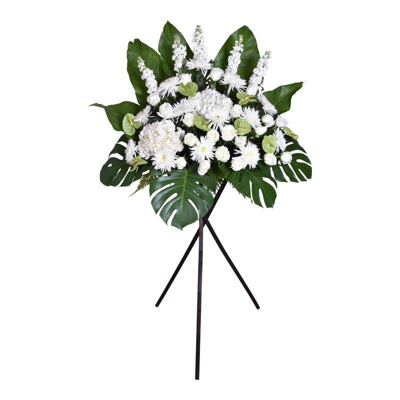 Green Anthurium (8 stalks), White Hydrangea (2 stalks), White Matthiolas (5 stalks), Green Monstera, Green Rainforest