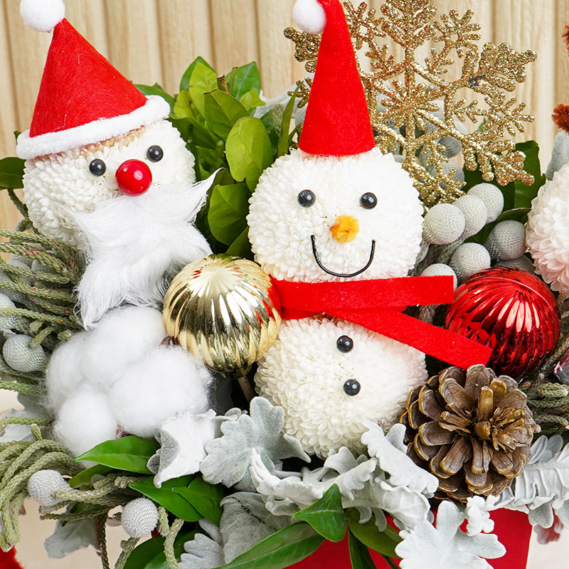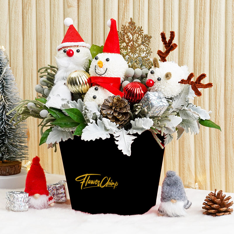 Santa's not the only one spreading joy this Christmas! 'Frosty's Wishes' is the flower box that brings festive fun and a cute Christmas characters together as one. Complete with Pine Cones and festive blooms, give the gift of giggles and good vibes with this jolly arrangement that's sure to sleigh.