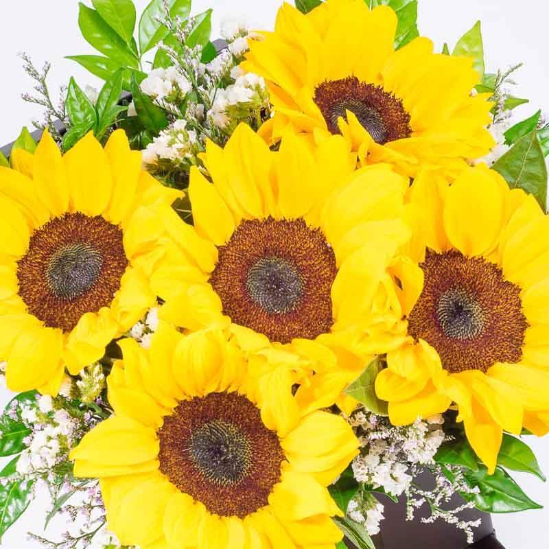 Yellow Sunflower (5 Stalks), White Statice (3 Stalks), Purple Caspia